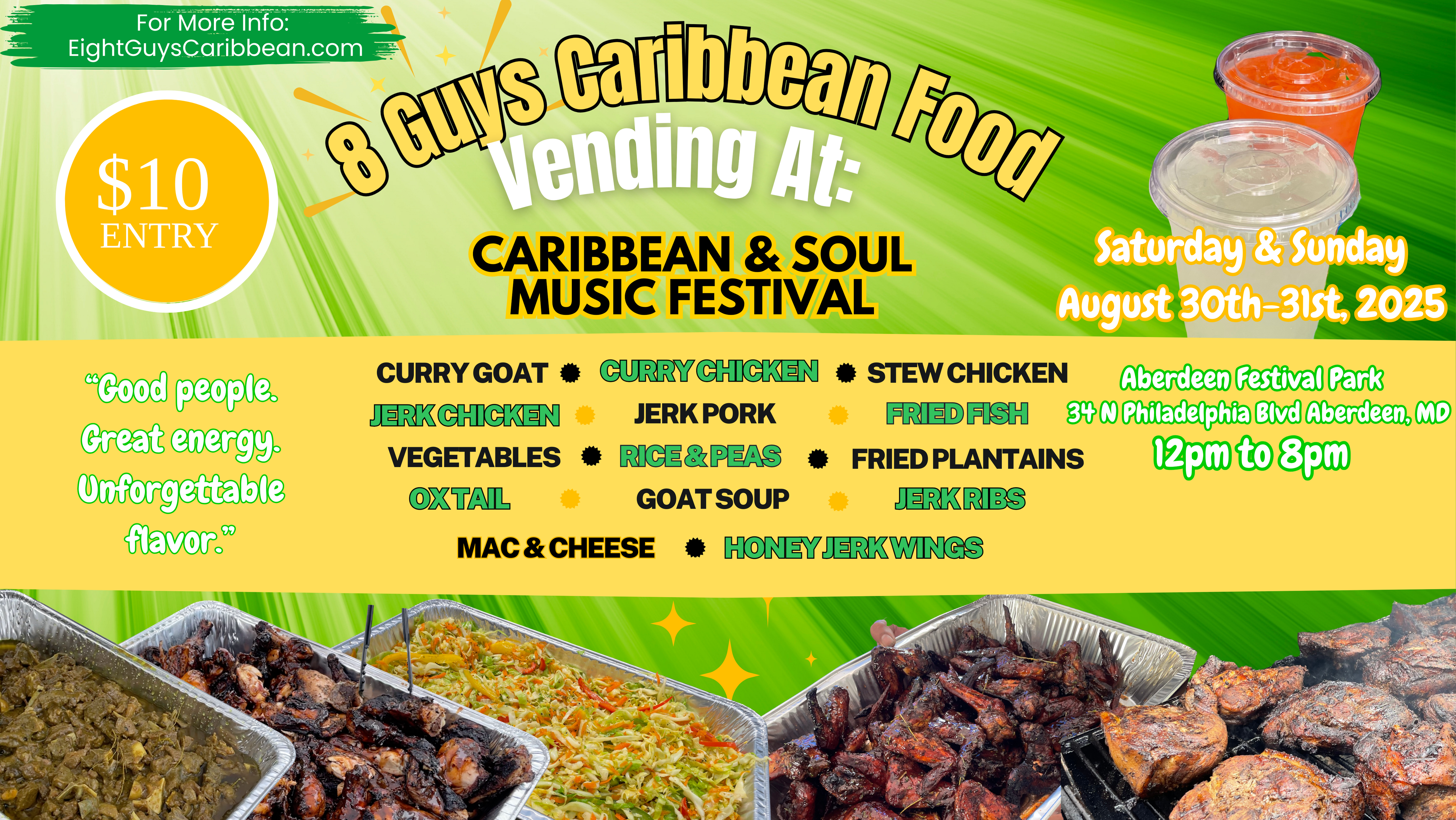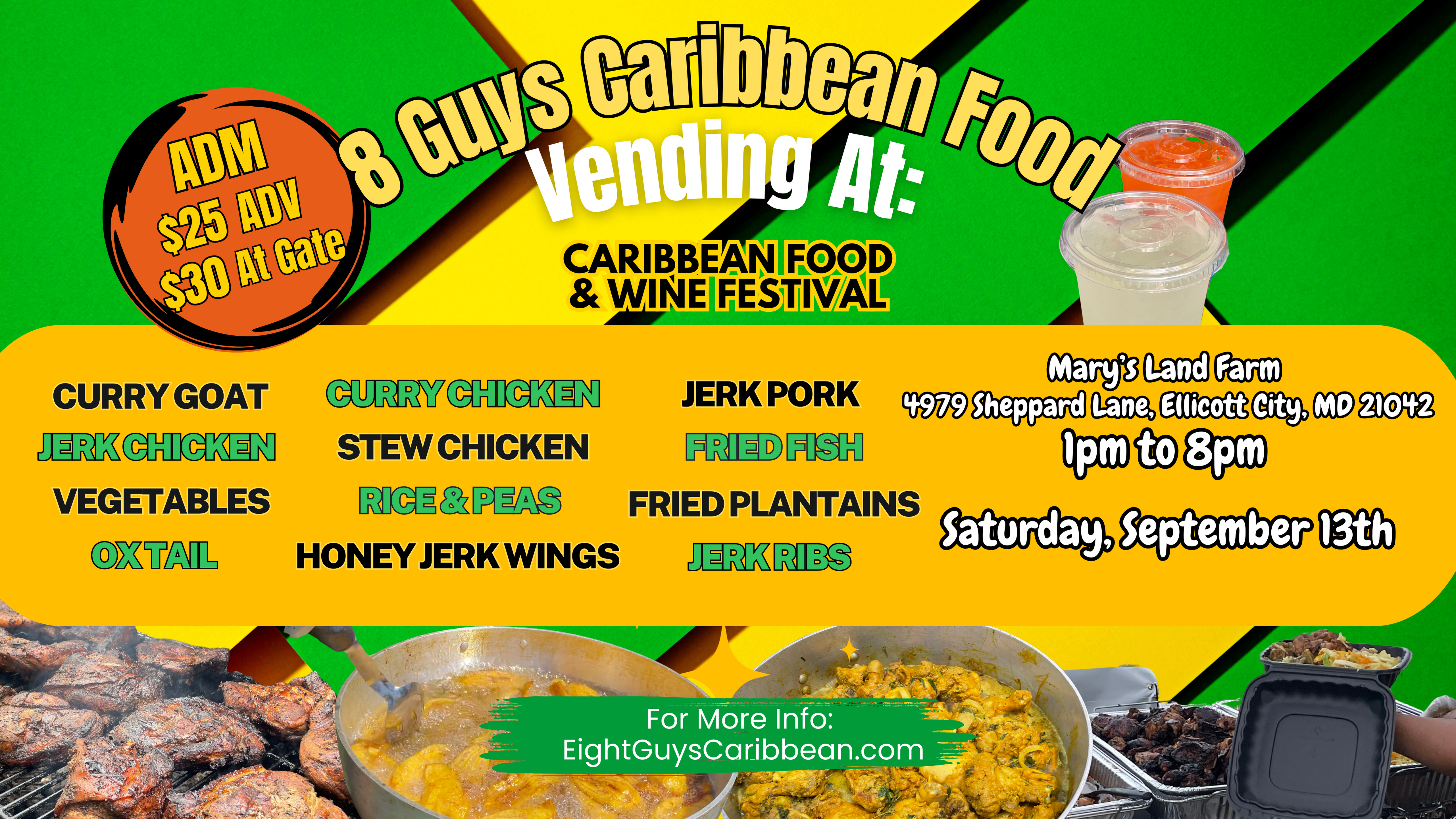 Sign up to receive updates on where we'll be next and special offers from Eight Guys Caribbean Food.